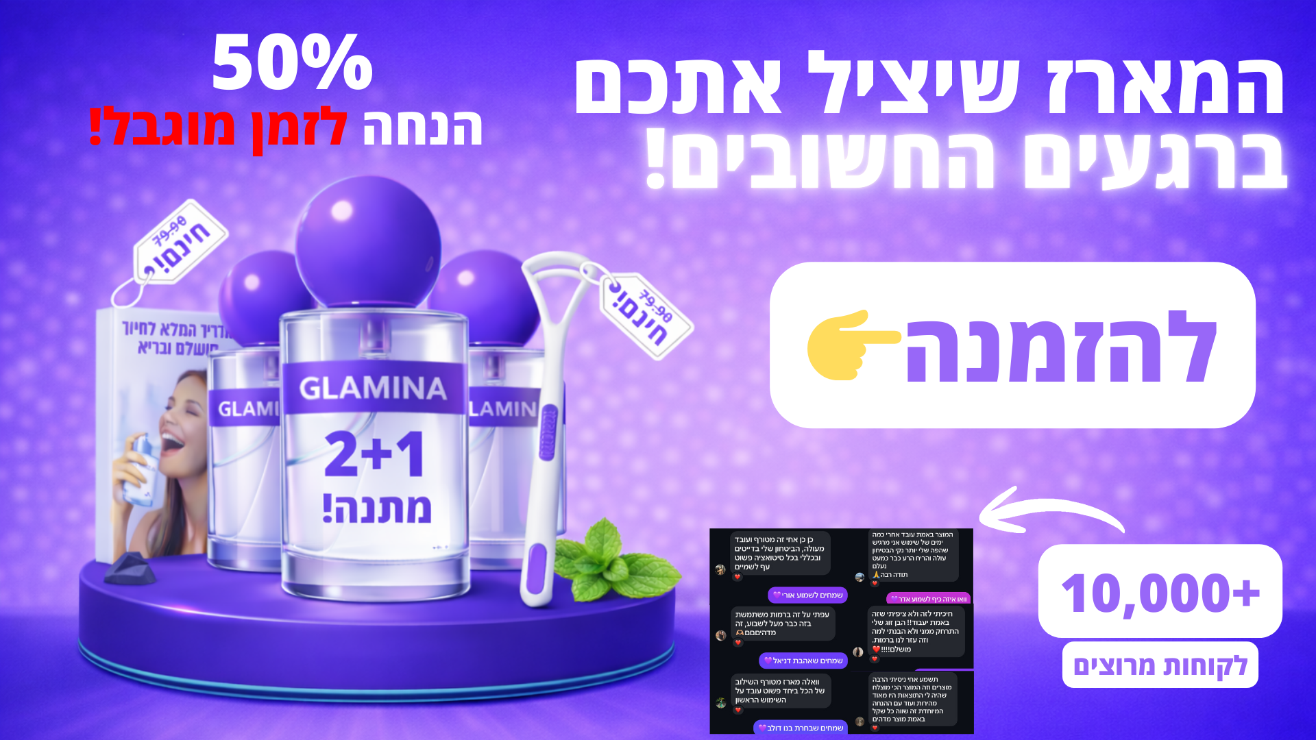 אז הבנו שמסטיקים לא עוזרים לפתור את הבעיה, ובזכות זה הגענו לספריי המושלם. מבוסס על חומרים טבעיים, מחזיק לכל היום ופותר את הבעיה לגמרי!