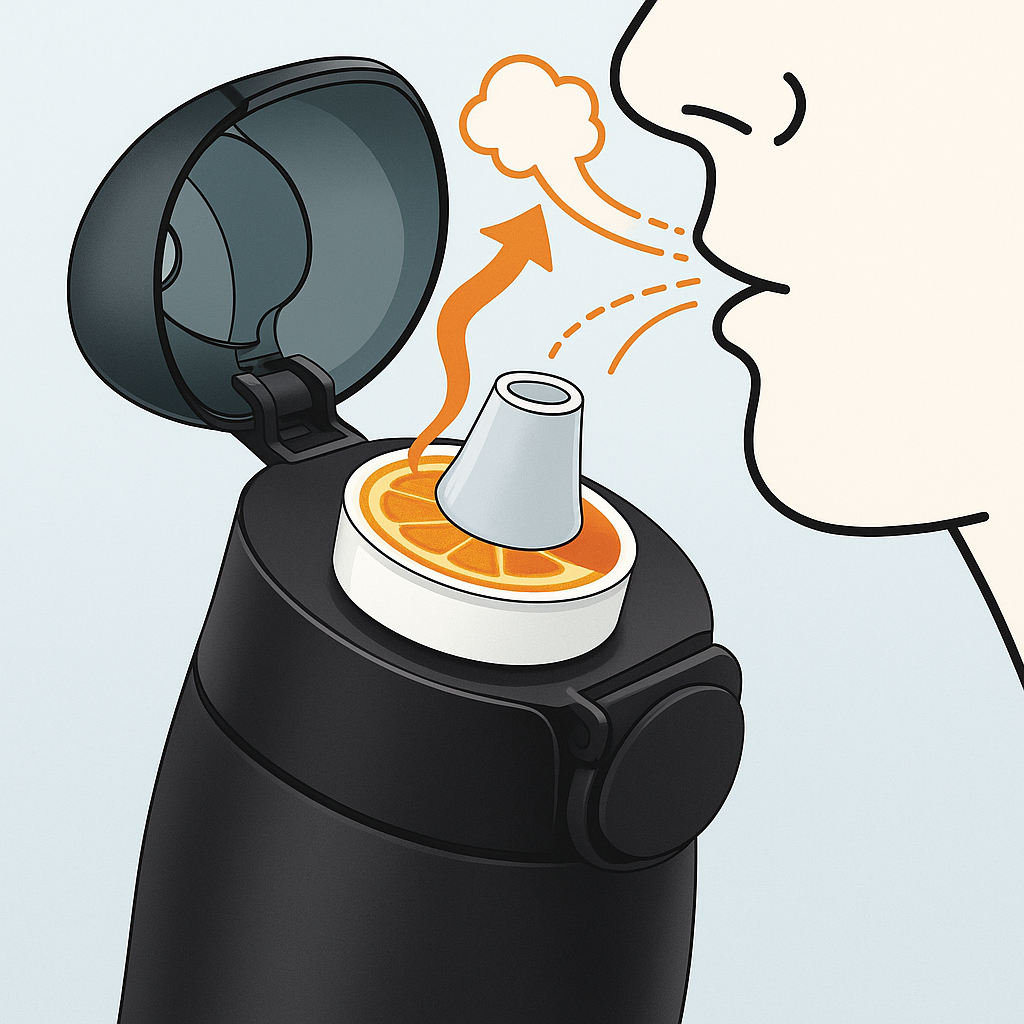 טבעת הריח שעל הבקבוק מפיצה את הריח שבחרתם שנקלט על ידי חוש הריח בזמן השתייה. המוח מפרש את הריח כטעם וכך נוצר הטעם הייחודי בבקבוק, בזמן שאלה בעצם 100% מים נקיים ללא סוכר וללא וקלוריות.