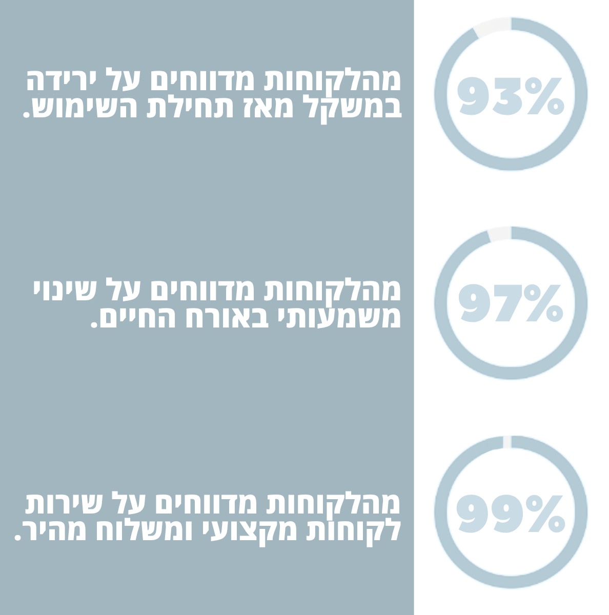 אתם מוזמנים לשאול מעל 15,000 ישראלים ששינינו להם את החיים, ולהסתכל בהצצה לחלק מהם כאן באתר.